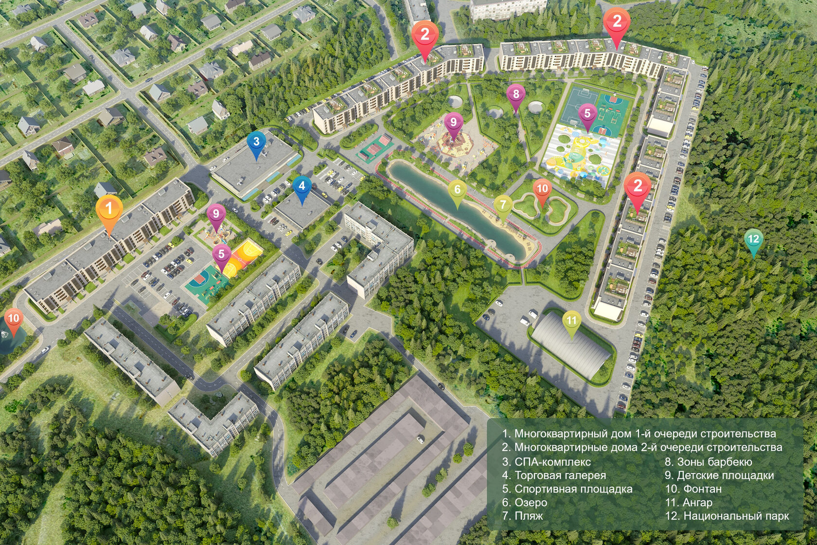 Уединение от шумной жизни большого города, лес федерального масштаба в шаговой доступности, близость к Иваньковскому водохранилищу, и при этом развитая инфраструктура: парковки, спортивные и детские площадки, а также ангары для хранения лодок и квадроциклов, беседки барбекю в качестве дополнительного предложения, – все продумано для счастливой и комфортной жизни резидентов ЖК.